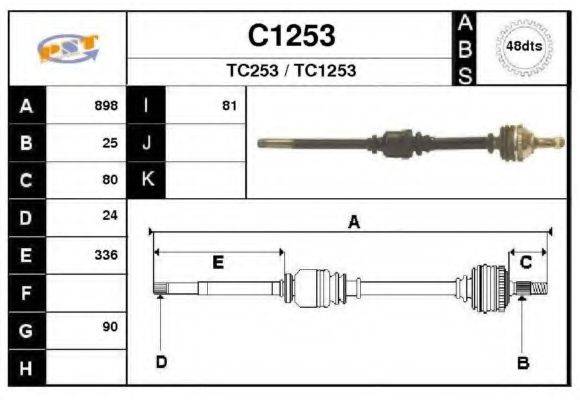 Діаметр 1 [мм]: 90 Діаметр 2 (мм): 81 Довжина [мм]: 898 Зовнішнє зачеплення із боку диференц.: 24 Зовнішнє зачеплення з боку колеса: 25 Кількість зубців: 48 Приводний вал: з кільцем ABS |